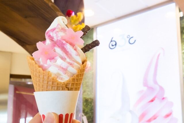 こちらでは苺風味のソースや桜パウダー、桜の花びらのチョコが飾られた「さくらのソフトクリーム」が登場。さっぱりした味わいで春を感じる可愛らしいソフトクリームとなっています。