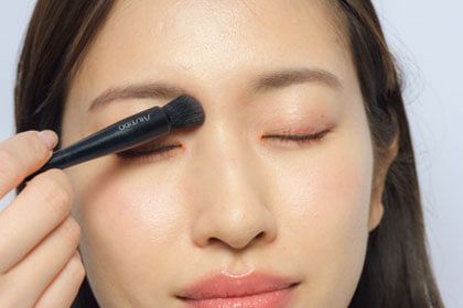 目頭に明るさ、目尻に影を入れて外側に重心をシフト