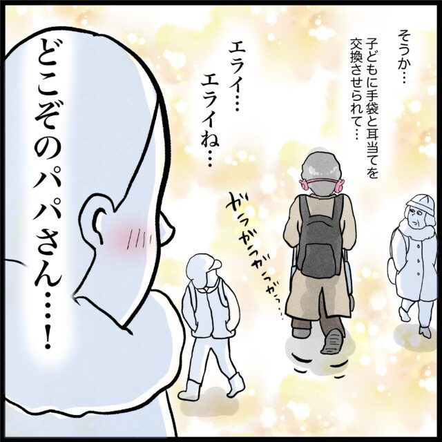 手袋奪われたパパの手が真っ赤で、はぁ~~と息で温めている姿は