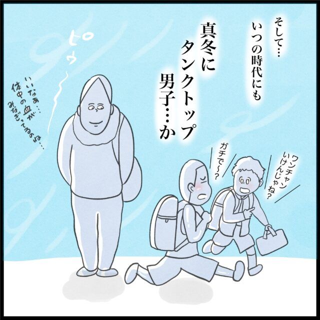 3. 真冬のタンクトップ男児にぬいぐるみパパ・・時代を超えた微笑ましい世界|はんままの子育て絵日記