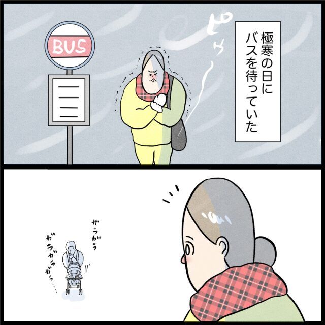 9歳長男レンくん、6歳長女スイちゃん、3歳次男ヨウちゃん、3人のお子さんのママであるはんままさんから、バス待ち中に目に入った微笑ましい人々の様子が届きました。思わずこちらも笑顔になってしまうのは、時代が変わっても変わらない人たち・・・。