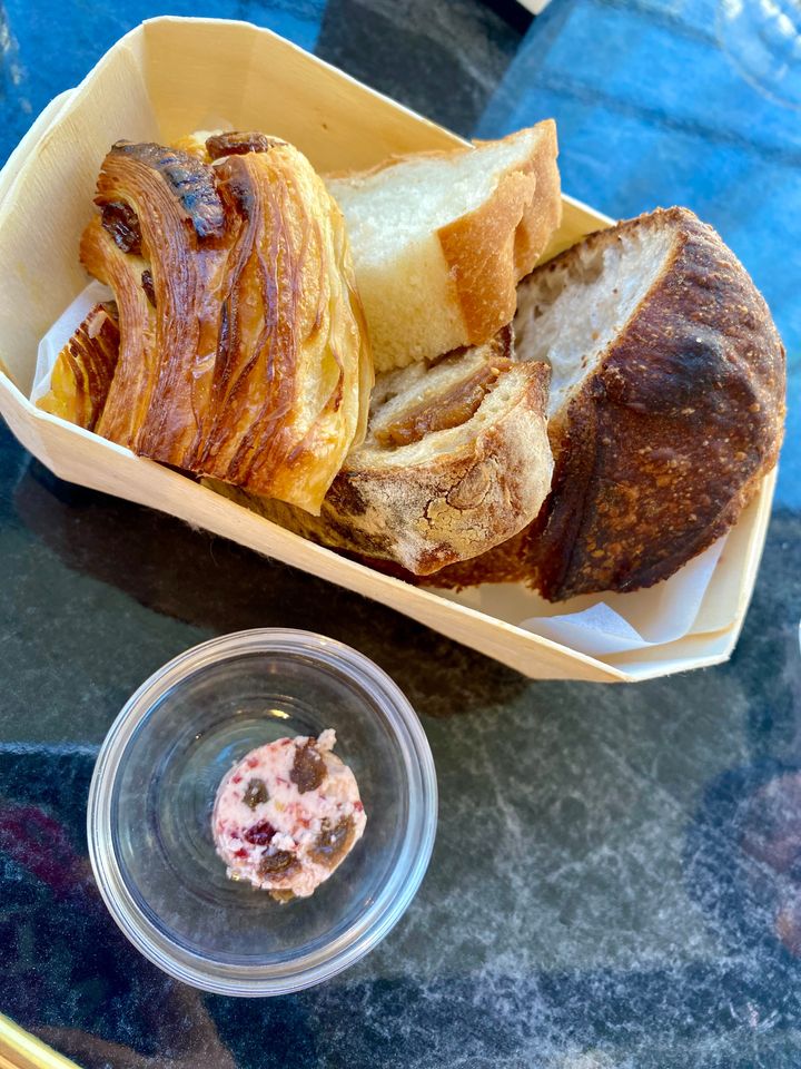 こちらのカゴに盛られたパンは食べ放題です🥐🍞