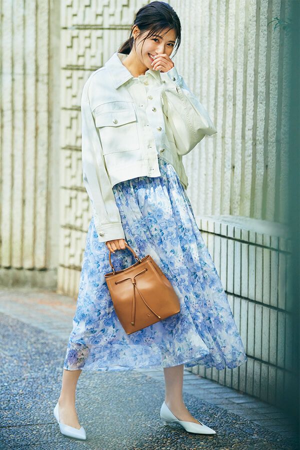 甘辛MIXを最旬に!今季トレンドの【水彩画柄ワンピ】は×デニムJKでカジュアルに落とし込んで