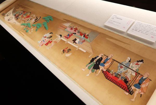 菱川師宣(ひしかわもろのぶ)《十二ヵ月風俗図巻(じゅうにかげつふうぞくずかん)》上巻、3月の場面