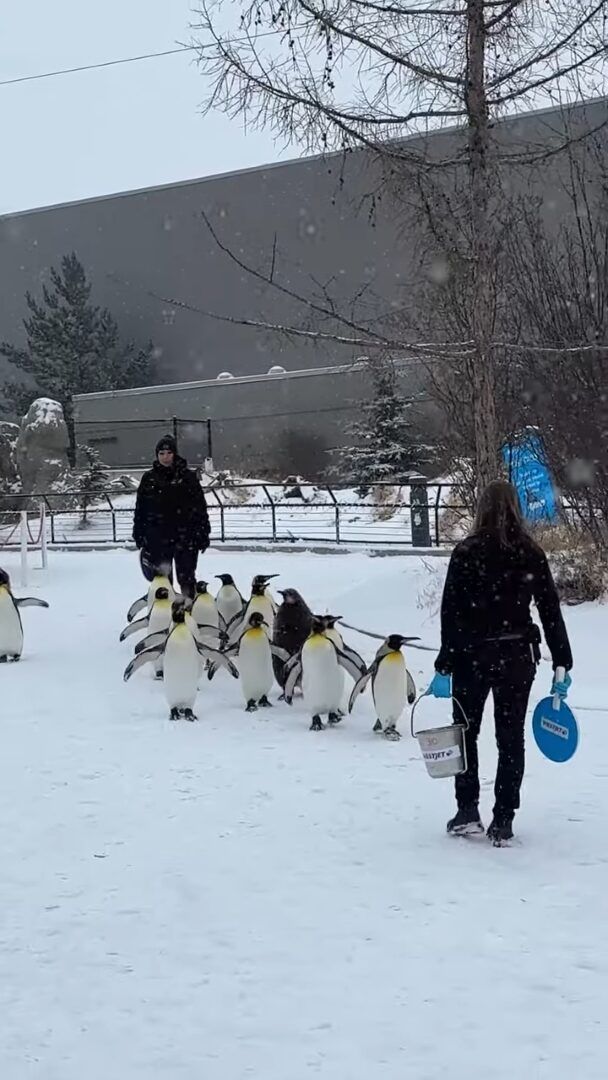 かわいいペンギンウォークが目撃されたのは、カナダ・アルバータ州にあるカルガリー動物園。