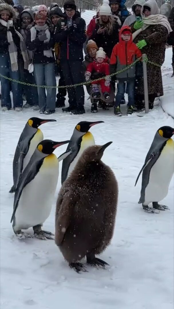 モフモフした赤ちゃんもまじってよちよち歩きで行進するキングペンギンたち。 カナダの動物園で目撃されたとても可愛い光景は、こちらの動画からご覧いただけます。