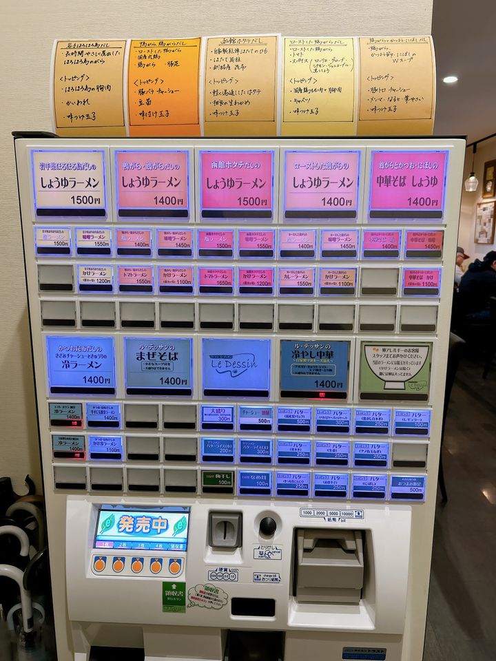 券売機で食券を購入してお店の方にお渡しするオーダー方法です。