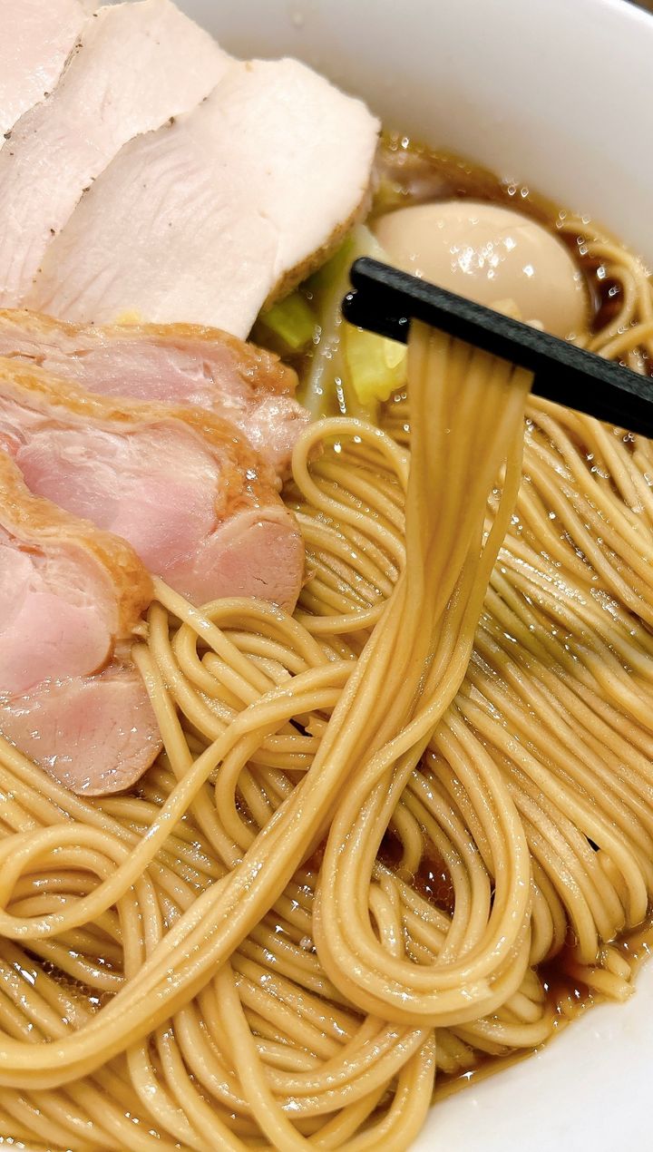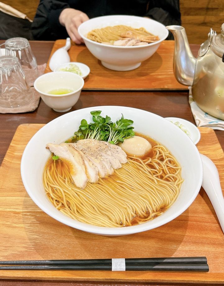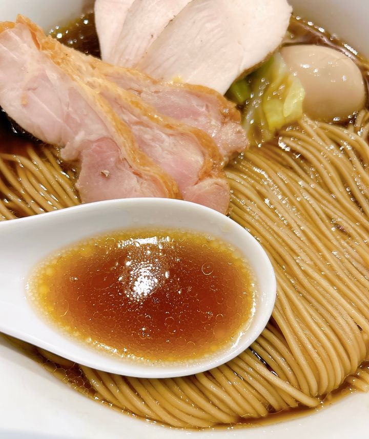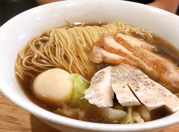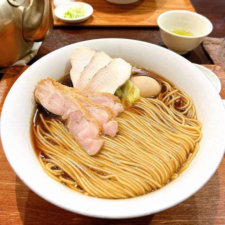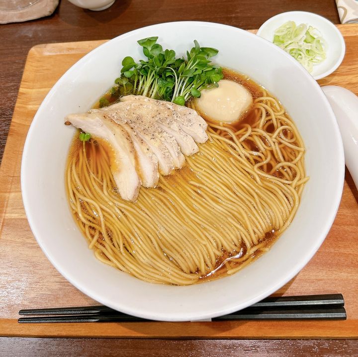 オーソドックスなおしょうゆベースのスープというよりかは、おしゃれな雰囲気が特徴的な一品。