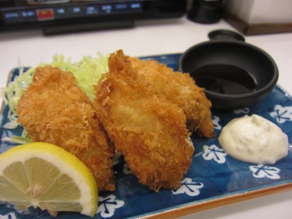 カキフライ。大粒なカキフライがアツアツで美味しかったぁ~。