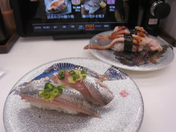 生いわし。げそ(甘だれ)。新鮮ないわしは、美味しい~。