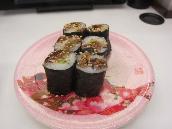 穴きゅう巻。穴子とキュウリとタレが美味しいバランスの巻物です。