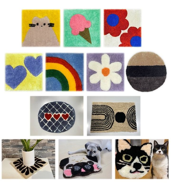 上2段:7つのデザインから選ぶミニマット作り「体験クラス」(5,500円)/下2段:自由な発想でデザインする「フリーデザインクラス」(11,000円〜)(画像:藤久株式会社リリース)