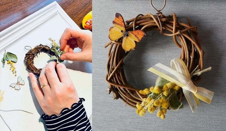 素材の選び方や配置のバランスで、個性や気分を表現できます。ヨーロッパでは3月8日は「ミモザの日」とのこと、春の訪れを感じつつ、ミニリース作りを楽しんでみませんか?