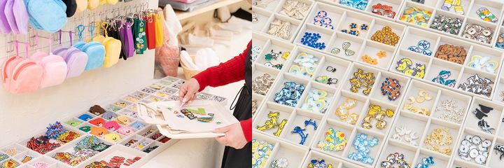 写真左:「韓国直輸入・文字ワッペン」(110円〜)/写真右:「デザイナーオリジナルワッペン」(330円〜)(画像:株式会社CREA WORKSリリース)