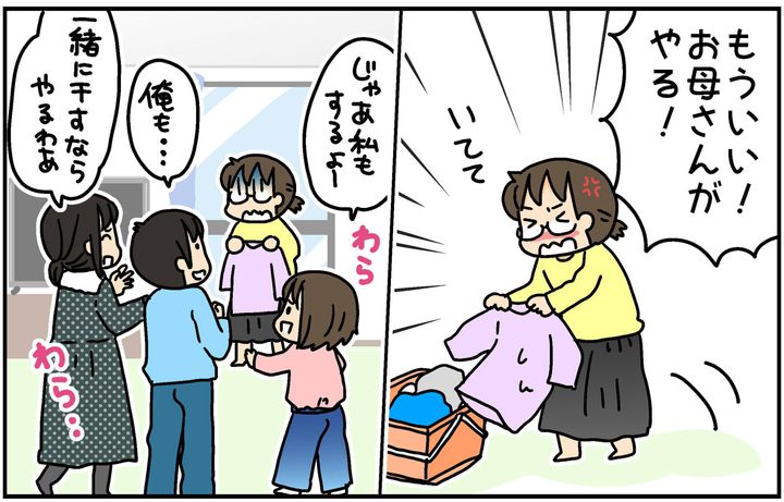 「もういいわ~!お母さんが干せばいいんでしょ!!」と動き出すと…
