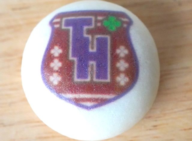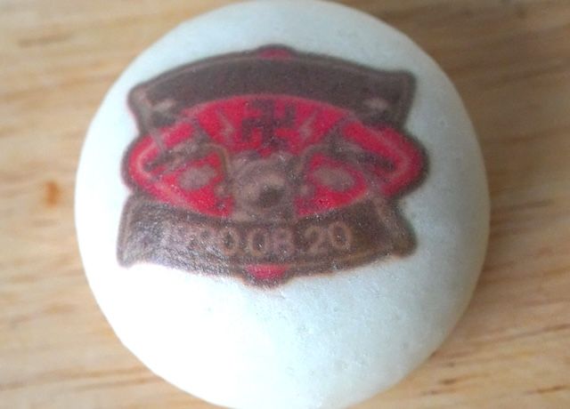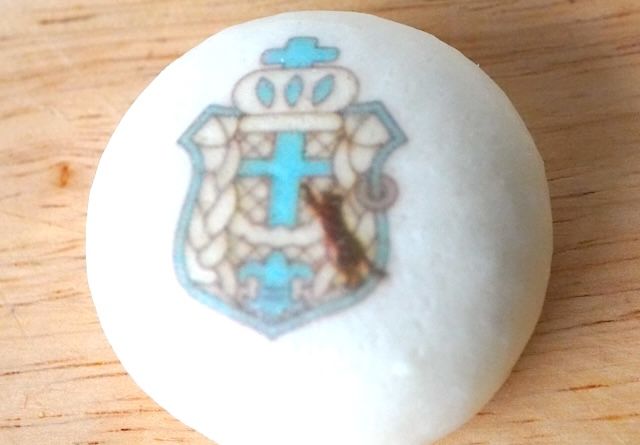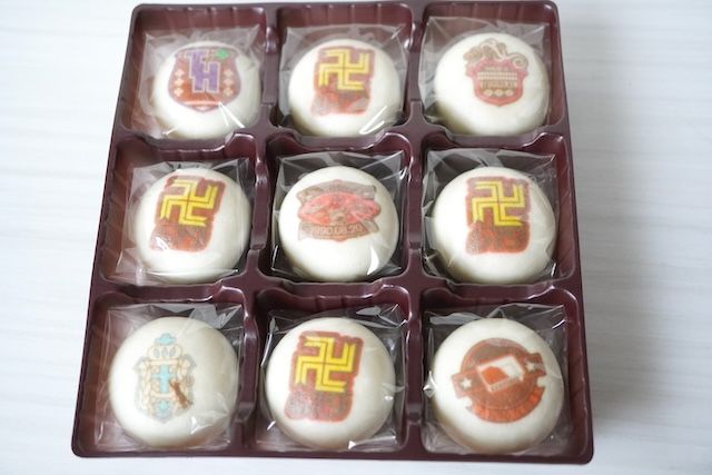 龍宮寺堅(ドラケン)の名前がアルファベットで入っているおまんじゅう。上にはドラケンの頭のタトゥーの龍も! 印刷がぼやけてよく見えませんが、ドラケンの誕生日5月10日の文字も入っているように見えます。