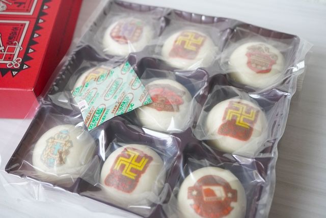 おまんじゅうには一つずつ鮮やかなプリントが施されています。