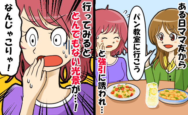 楽しいランチタイム中、ママ友は急に「次はパン教室に行こう」と誘ってきました。私は「なんで急にパン教室……?」と不思議に思ったものの、ママ友の押しに負け、試しに1度参加してみることに。