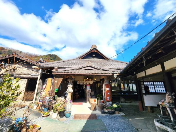 昭和44年創業の「鈴加園」さんでは、秩父谷で捕獲する天然の猪、熊、鹿の肉やきのこ類などの秩父郷土料理を、囲炉裏のある合掌造りの店内で味わうことが出来ます。