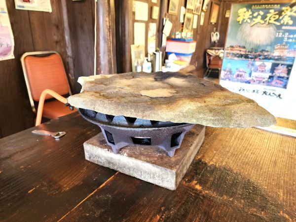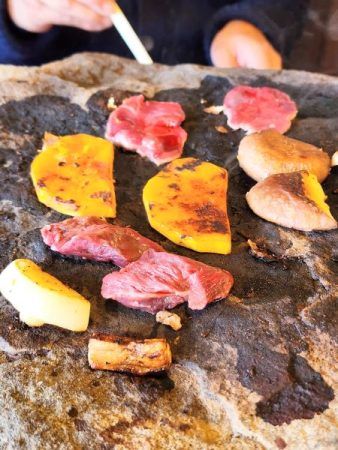 何といっても一押し、ご自慢の料理は自然石の砂岩を使用した石器焼き!