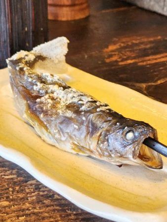 きのこ類や川魚も外せない秩父の名物!炭火で焼かれた肉厚で香り豊かなしいたけや、皮はパリッ!身は柔らか~な川魚を味わいながら、ついに日本酒にも手を出す私(笑)。