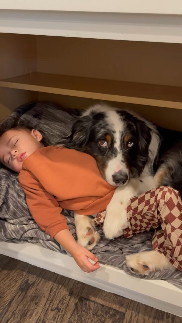 ママの作業が終わるのを待っている間に眠ってしまった女の子と一緒にいた愛犬。 ママの視界に飛び込んできたその尊い光景は、こちらの動画からご覧いただけます。