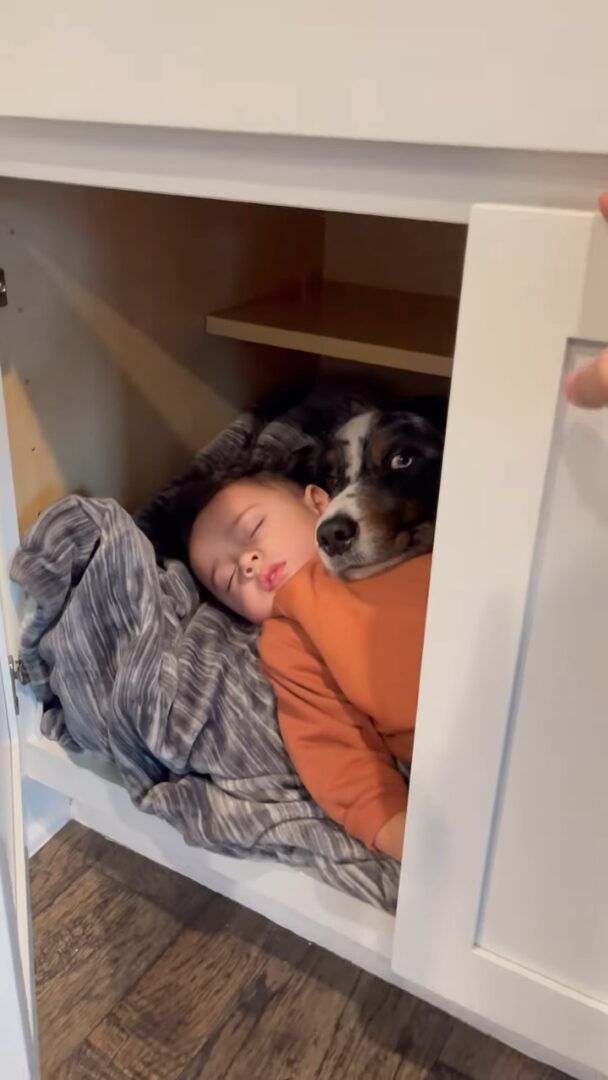 3. ママが作業をしている間おとなしくしていた女の子と愛犬。ふたりの様子を見に行くと・・尊い光景が!!【アメリカ・動画】