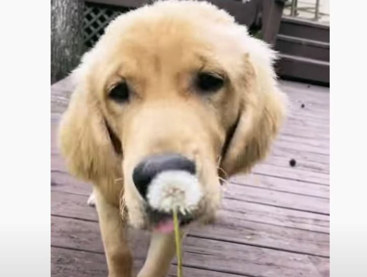 3. 「たんぽぽが大好き」だという犬さん、鑑賞用かと思ってたらパクっ!