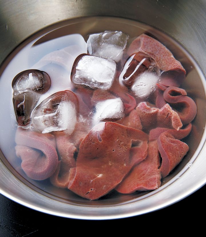 クセが強めのレバーは、氷水にさらすと臭みがおさえられ、食べやすくなります。レバーに筋があるものは、除いてから調理を。