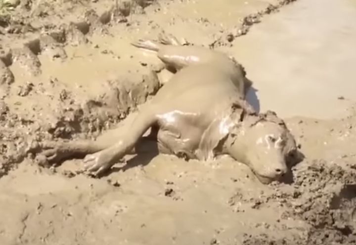 もはや泥と一体化している…泥遊びが好きすぎる犬。