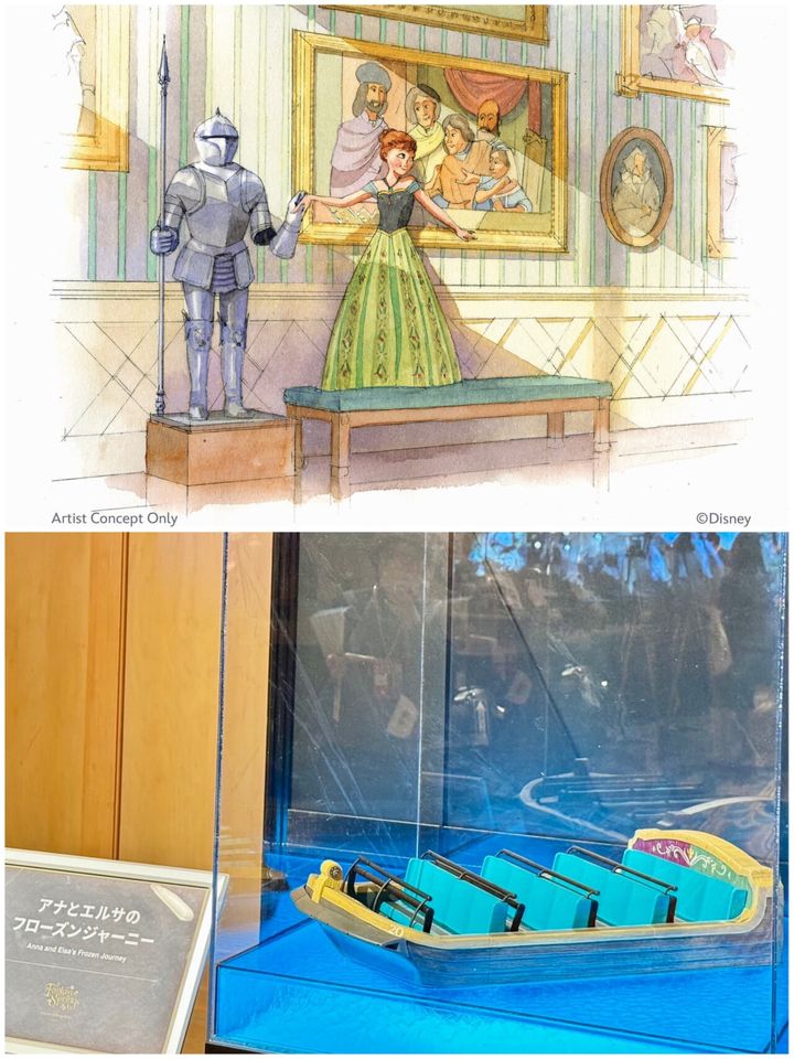 ▲上:「アナとエルサのフローズンジャーニー」の内観 ※画像はイメージ ©Disney、下:ボートの模型