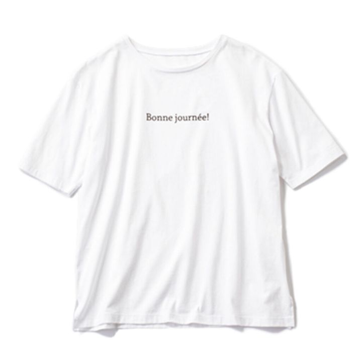 シャツやジャケットを重ねてもちょうどいいラフさが出せるロゴTシャツ。小さめロゴを選べばきれいめシーンでも大人っぽく着られます。¥2,980(アテニア)