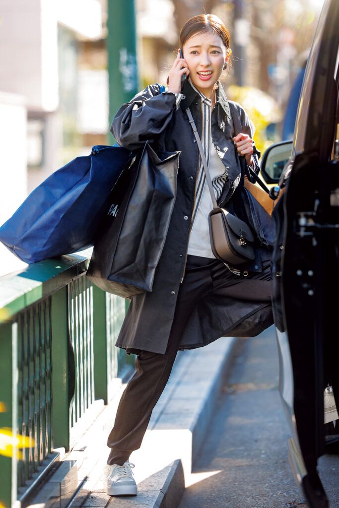 宮本マユ・32歳。アパレルブランドを中心としたフリーランスPR。1年前にアパレル会社から独立。日々さまざまな人と会う職業柄、トレンドを取り入れたキレイめワードローブを心がけ、この春はモノトーンで統一。仕事で知り合った同業者で2歳上の裕太(ゆうたん)と付き合って半年。公私ともに支え合える関係♡(本人談)