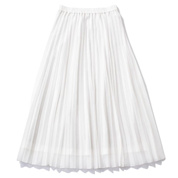 シアー素材が軽やかで春気分も盛り上がるプリーツスカート。動くたびに揺れる裾がモノトーンの着こなしを軽やかにいろどります。[一部店舗のみで販売]¥2,990(GU)