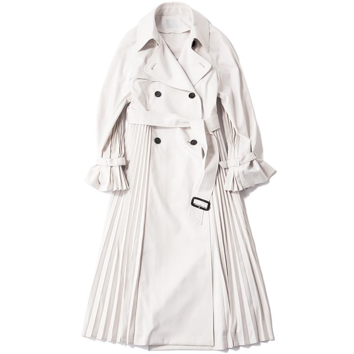 2023年、即完売となった幻のジャカードコートに白が登場。たっぷりとしたボリュームで、黒パンツコーデもドラマティックに。