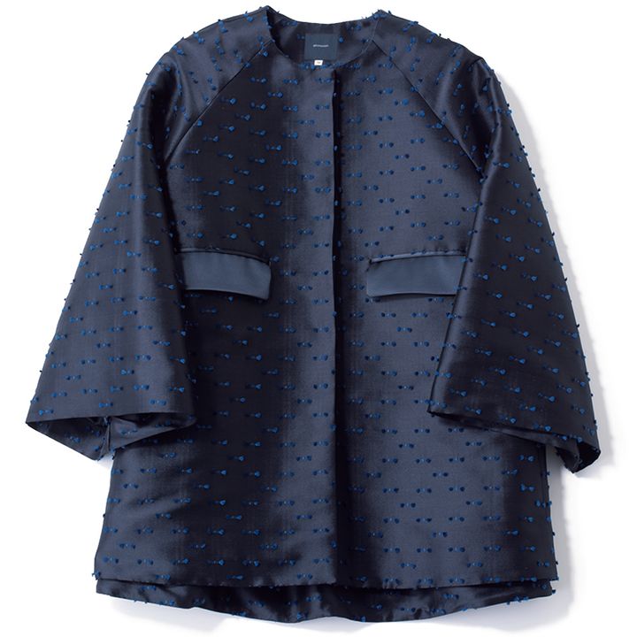 王道な品の良さを携えながら、コクーンスリーブでほどよくモダンに。ハリのある三重織りが、しゃんとしたフォルムをキープしてくれます。もちっとした質感で着心地も抜群。