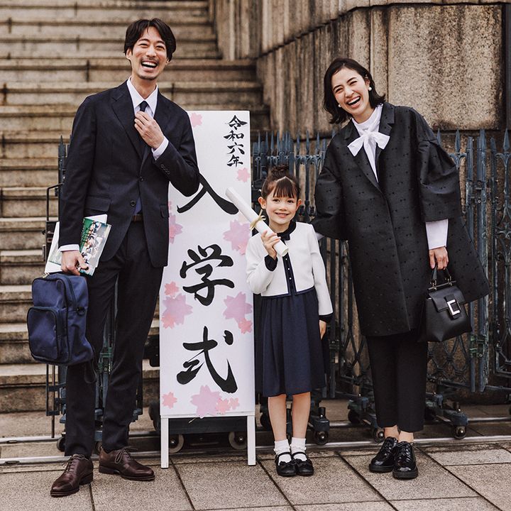 アウター¥52,800 ブラウス¥18,700(ともにユナイテッドアローズ/ユナイテッドアローズ 六本木ヒルズ店)パンツ¥18,700(セルフォード/セルフォード ルミネ新宿1店)バッグ¥383,900(ロジェ ヴィヴィエ/ロジェ・ヴィヴィエ・ジャパン)シューズ¥42,900(ファビオ ルスコーニ/ファビオ ルスコーニ ルミネ有楽町店)ピアス¥1,980,000(TASAKI)【KIDS】ボレロ¥8,250 シューズ¥5,280(ともにグリーンレーベル リラクシング/ユナイテッドアローズ グリーンレーベル リラクシング 二子玉川ライズ店)ワンピース¥28,600(こども ビームス)靴下/スタイリスト私物【MENS】ジャケット¥60,500 パンツ¥38,500〈ともにエストネーション〉シャツ¥37,400〈エリッコ フォルミコラ〉(すべてエストネーショングランフロント大阪店)その他/スタイリスト私物