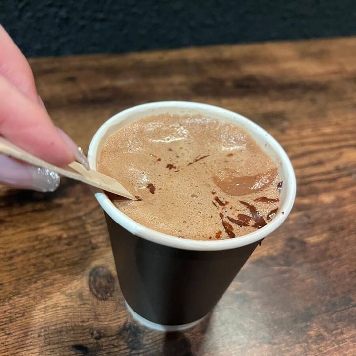 この山盛りのチョコたちをスプーンで沈めて全部溶かします。飲んでみるとひと口目からすごい! めっちゃチョコ! 超濃厚でおいしい!! そしてエスプレッソがほのかにか香ります。コーヒーというよりも「とっても濃厚なカフェモカ」というイメージでした♡ カフェモカ大好きな私は、超リッチなカフェモカを飲んでいる感じで、すごく好みでした! おいしすぎてすぐに飲み干してしまい、また絶対飲みに行こうと決めました(笑)。次はシナモン&ジンジャーフレーバーを試してみたいです♡