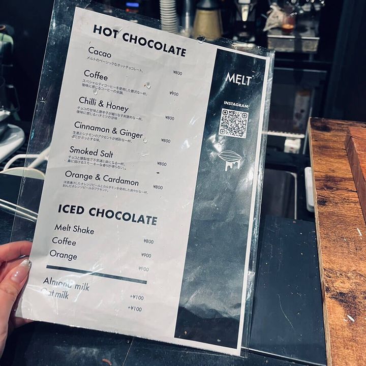 ワクワクしながらメニューを見ると、ホットチョコレート、アイスチョコレートの表記がありました。