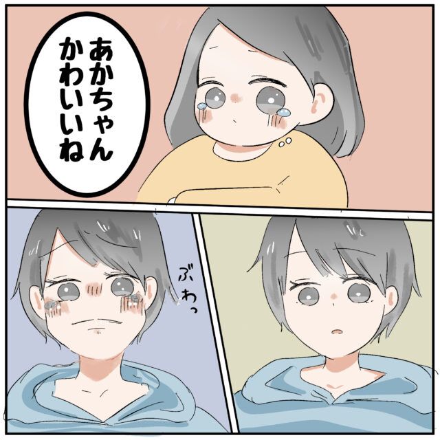 すると、みーちゃんのことばを聞いた赤ちゃんのママの目から大粒の涙が溢れだしたのです。