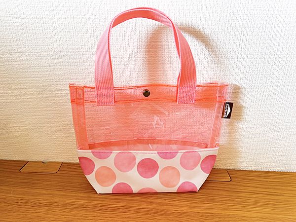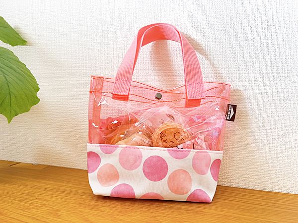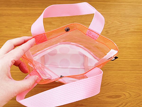 そして、私が心惹かれたピンクのクリアバッグ。ボタン付きで使いやすいのがうれしい。