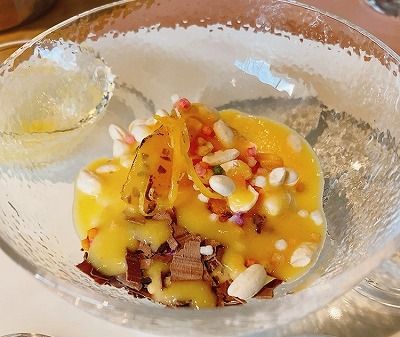 あと、ユニークだったのが「リオレのだし茶漬け風」。リオレの「リ」はフランス語でお米、「オレ」はカフェオレなどと同じでミルクの意味で、いってみればフランスのおやつ。名前はお茶漬けですが、食べるとしっかりお米のデザートです。〝OMO7大阪と言えば!〟のミックスジュース風のソースが、また合う! チョコやポン菓子、あられなどをトッピングできるので、自分好みにアレンジしてみて。ちなみに、写真下は全部がけしたところ。ポン菓子やあられのサクサク食感がアクセントに。