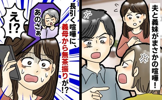 ある日、夫と義妹がささいな喧嘩をしてしまいました。数日後に私たち夫婦と義妹とで食事に行く予定があったため、それまでには仲直りをしてほしいと思う私。するとその日の夜、義母から「どうしてあなたが兄妹喧嘩の仲裁をしないの!?」と驚きの電話がかかってきたのです。2人の間に入って何かを言えるような立場ではないと正直に伝えても、義母は「嫁が仲裁するべきよ!」と言うばかり。私は正直、「兄妹喧嘩に振り回されたくない……」と納得いきませんでした。そのあと2人はなんとか仲直りをしたようで、改めて私と夫、義妹の3人で食事の予定について話すために集まったですが、またしても喧嘩になってしまいます。義母の言葉が頭をよぎった私は、仕方なく仲裁に入ろうとしましたが、2人は終始私の言葉にはひとつも耳を貸してくれず……。