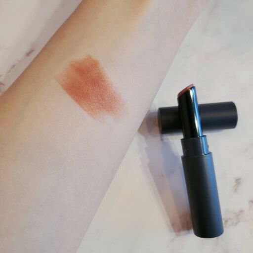 絶妙なラテ系のヌードカラーはメイクを邪魔しないですし、肌色も選ばないので、どんなメイクに合わせて使うことができる使い勝手の良さが魅力。マット系のリップが苦手なら、使用前に薄くリップクリームを仕込んでいれば安心です。