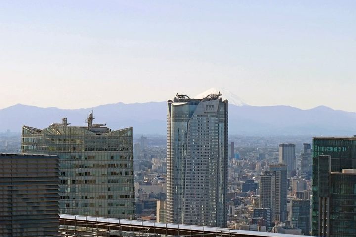 六本木ヒルズの後ろには富士山の白い頂が見えました。(写真:若杉優貴)