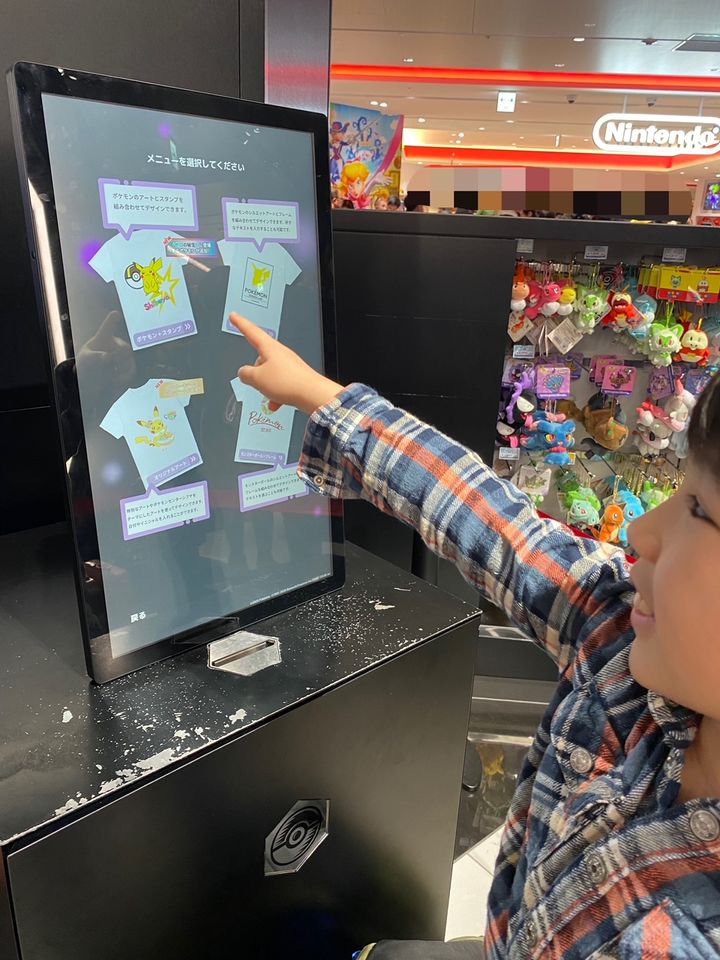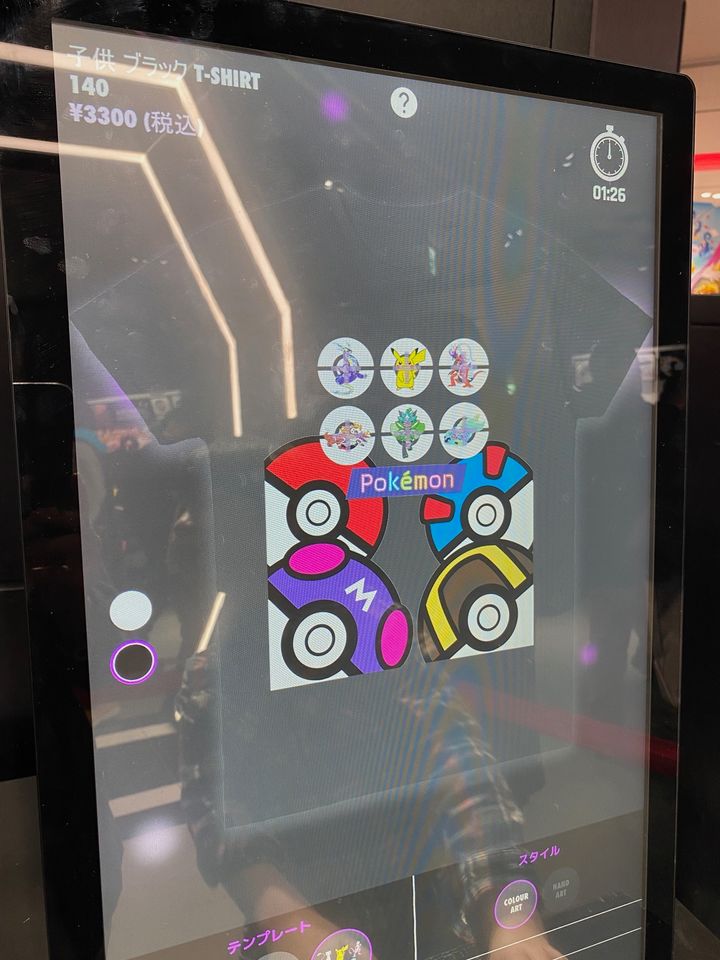 「ポケモンデザインラボ」とは、ポケモンセンターシブヤに設置されているコンテンツのひとつで、その場でTシャツのデザインをし、その日のうちに完成して持って帰ることができるというサービスです。