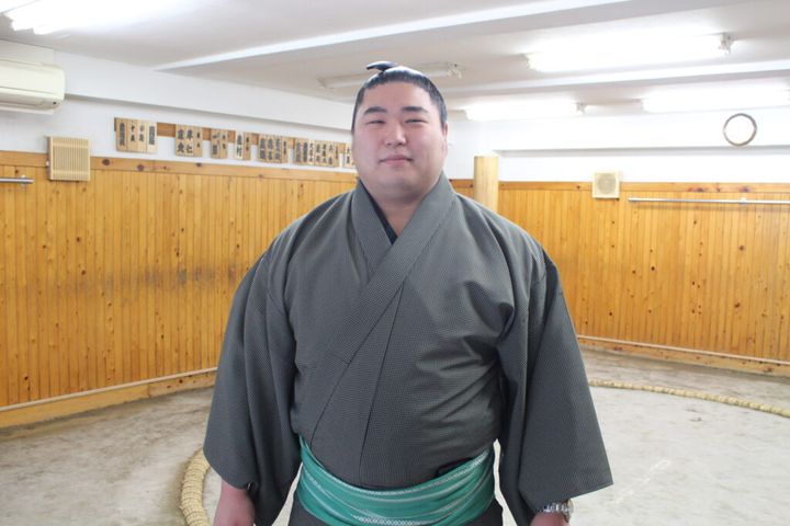 プロレス選手もそうですけど…、やっぱりおじいちゃん(元小結・若葉山関)じゃないですかね。身近でスゴい人、っていうのがおじいちゃんだったから。小学生の頃は相撲に対してそんなに興味があるわけじゃなかったけど、実家のちゃんこ屋さんに化粧まわしが飾ってあったりするのを見て「カッコいいな」とは思ってました。