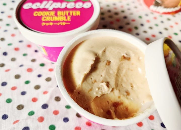 エクリプスコの代表作「eclipseco クッキーバター」(90ml/税込351円)。最初の感想は「本当に植物性ですか!?」と思ったほど濃厚リッチでクリーミーなアイスです!
