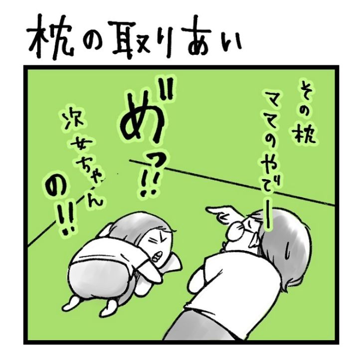 【育児マンガ】「イヤイヤ期の朝あるある」起きた瞬間ブチギレ!?“枕”をめぐって母娘バトル