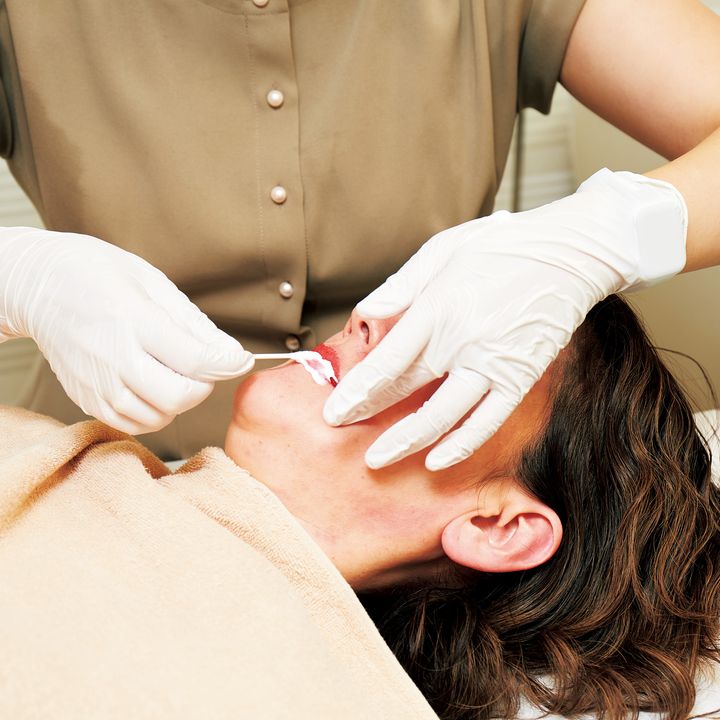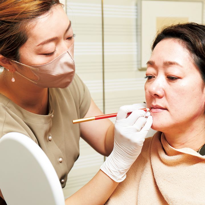 まずはカウンセリング。本来の唇の形を確認しながら、仕上がりの理想の形をマーキング。
